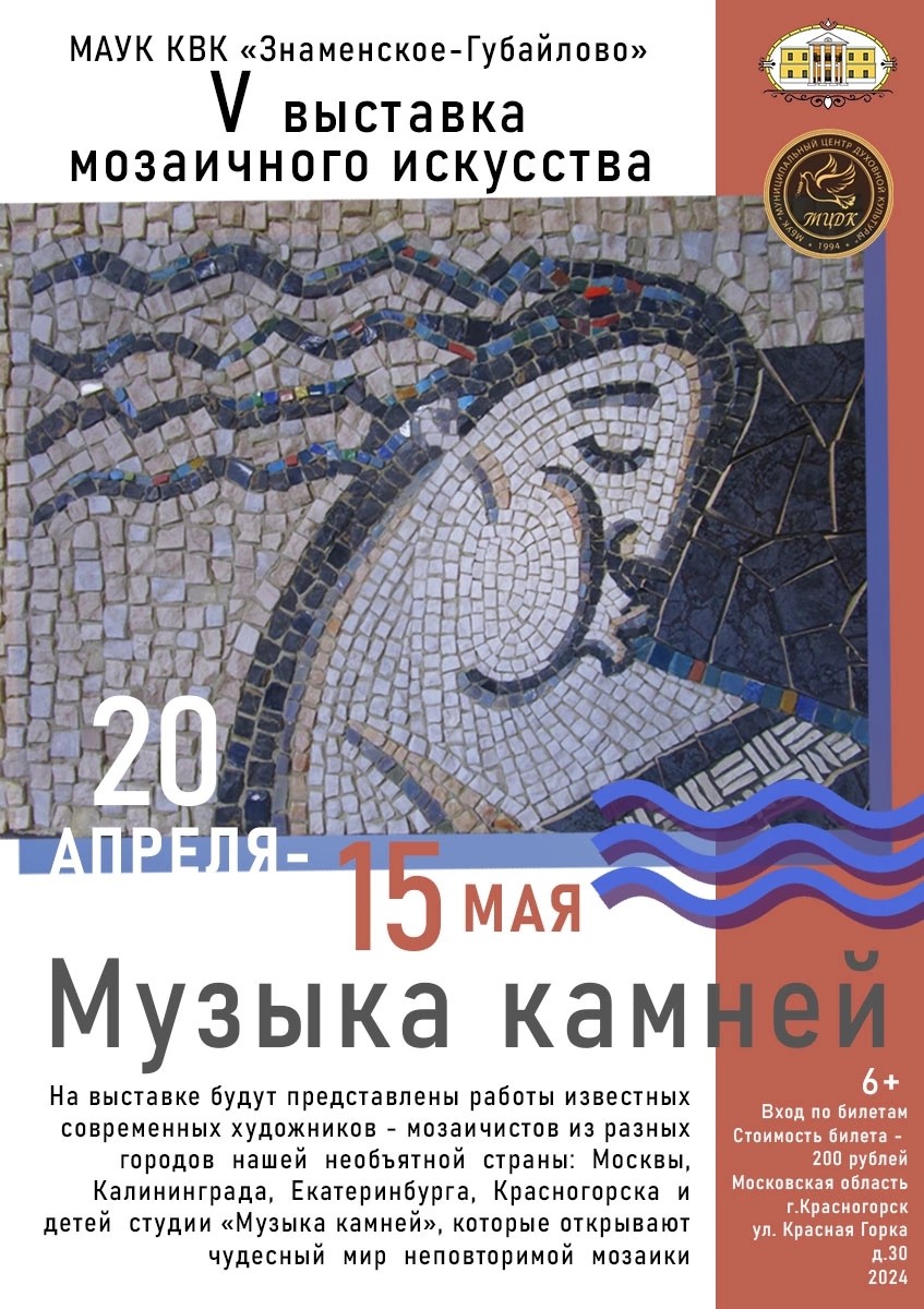 20 апреля в 13:00 в Главном доме Усадьбы Знаменское-Губайлово состоится Открытие V выставки мозаичного искусства «Музыка камней».