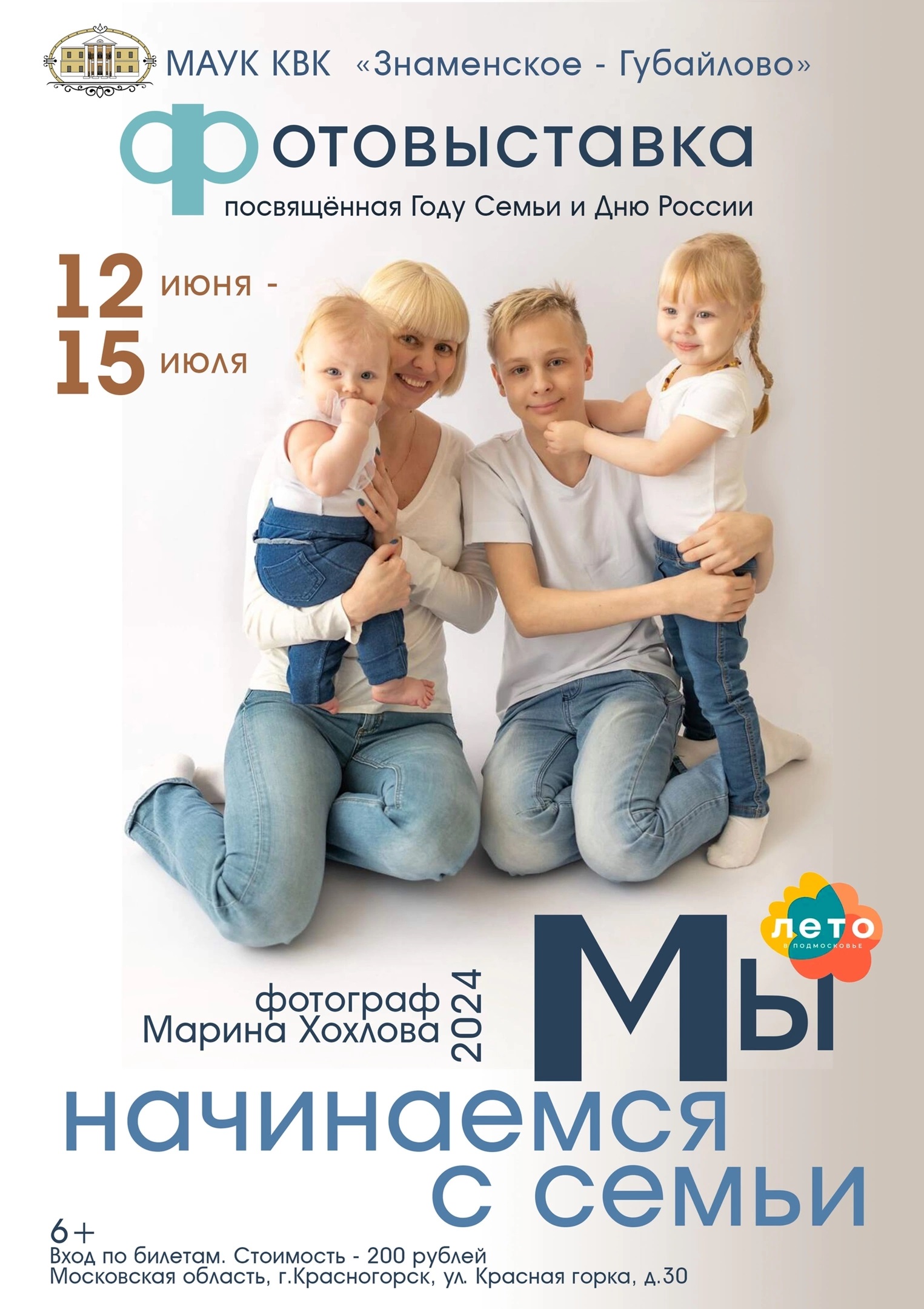 12 июня 2024 года в 12:00 в Главном доме Усадьбы Знаменское-Губайлово состоится Открытие фотовыставки «Мы начинаемся с семьи»