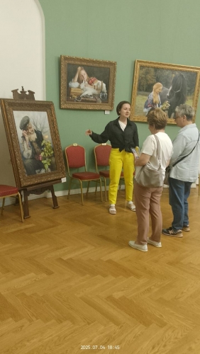 Посетители не только узнали о разных периодах в строительстве Усадьбы, но и услышали стихи поэтов Серебряного века, а также перенеслись в эпоху светских мероприятий XVIII-XIX веков. Посетили и рассмотрели временные художественные выставки, которые проходят на данный момент в культурно-выставочном комплексе (выставка Саши Соколовой "364", а также выставка Константина Мирошника и Наталии Кургузовой-Мирошник "Люби.Целуй"). Экскурсия завершилась прогулкой по приусадебной территории и рассказом о старинных павильонах, которые ранее находились в парке (но ныне утрачены), а также о важной роли Знаменского храма в развитии и формировании культуры этих мест.