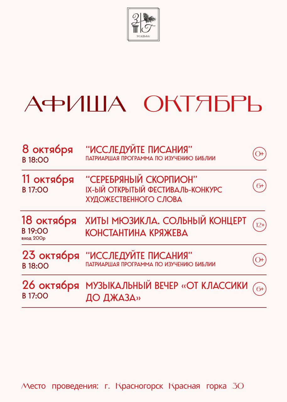 Афиша октября в усадьбе «Знаменское-Губайлово»
