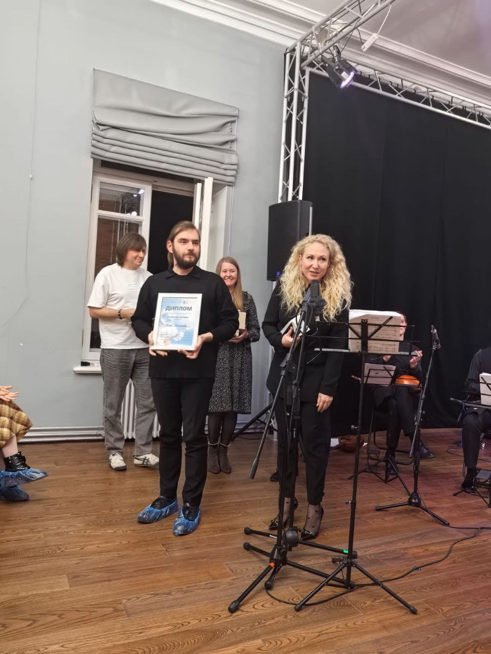 На сцене прозвучали яркие и смелые произведения участников — Ильи Богомолова, Анжелики Габибовой, Анны Кузьминой, Антона Леонтьева, Сергея Луговского, Алины Подзоровой и Татьяны Шатковской, — в исполнении Русского камерного оркестра «Усадьба» под управлением Романа Хохрякова и солистки Татьяны Тураевой.