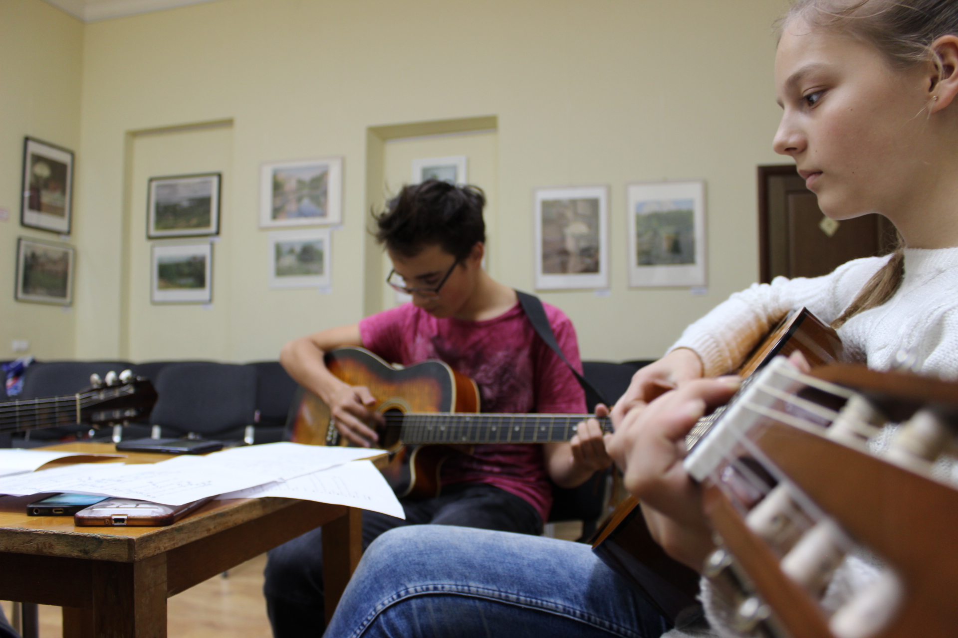 В студии экспресс-обучения на гитаре "Аккорд" в усадьбе Знаменское-Губайлово проходят занятия по понедельникам и пятницам. Некоторые ученики через 8 занятий могут уже свободно себе аккомпанировать.
